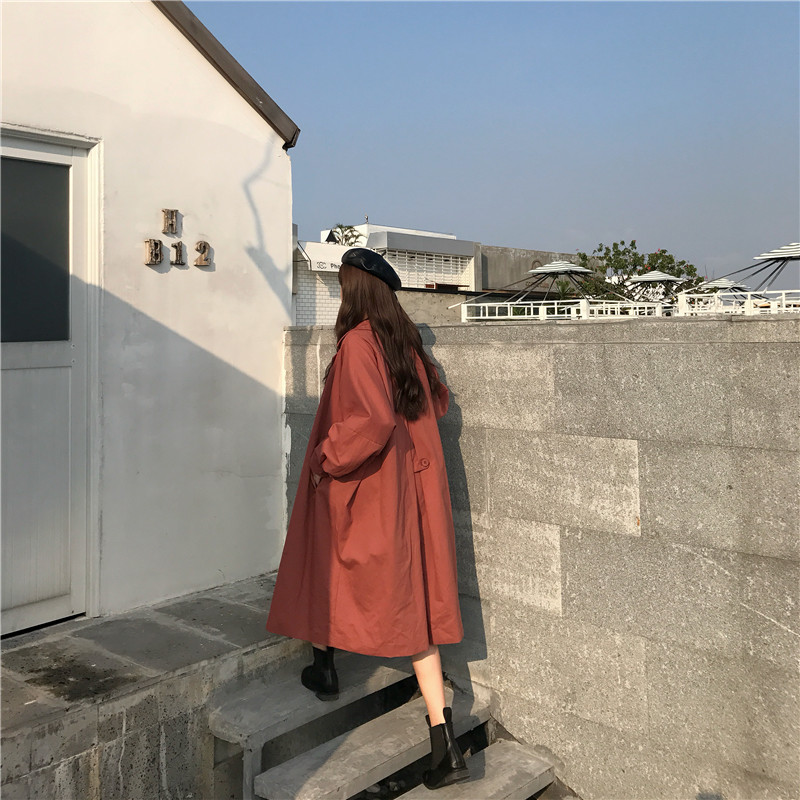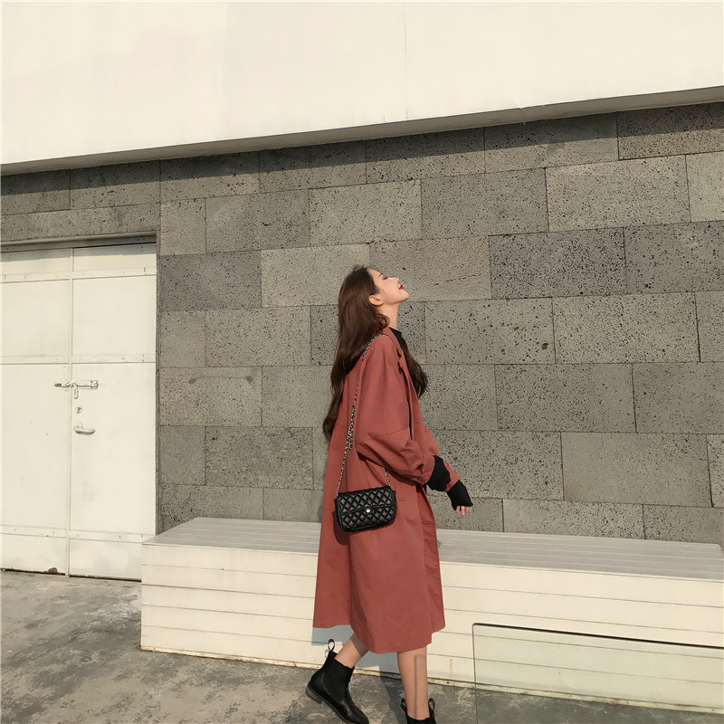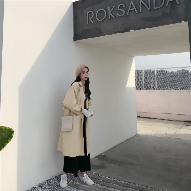 風衣女中長款韓版秋季2018新款純色系腰寬松復古外套(有里布)潮