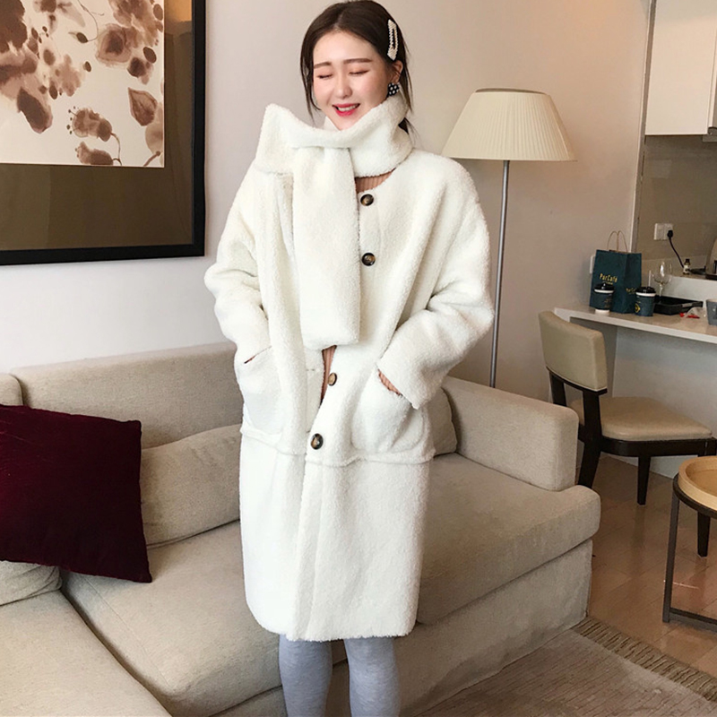 / 2018流行大衣女秋冬裝新款韓版寬松百搭中長款單排扣羊羔毛外套潮