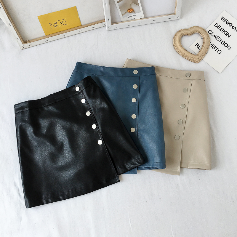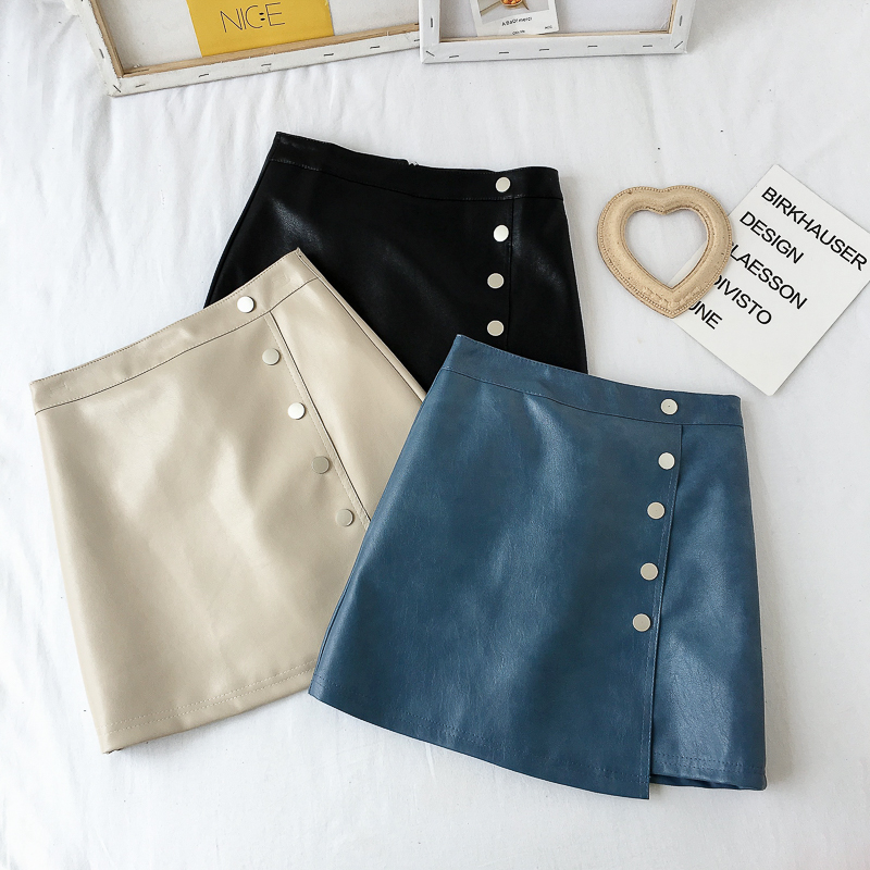 / 秋裝女2018新款韓版百搭防走光不規則洗水皮裙包臀短裙A字半身裙