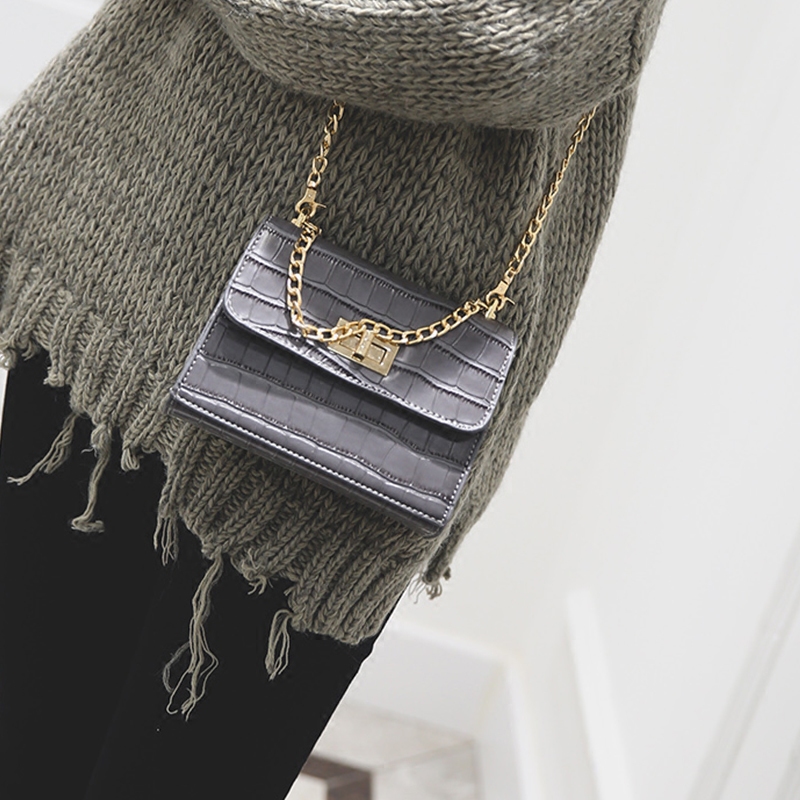 / 新款韓版鏈條包鱷魚紋手提單肩女包斜挎包女小包迷你小方包潮