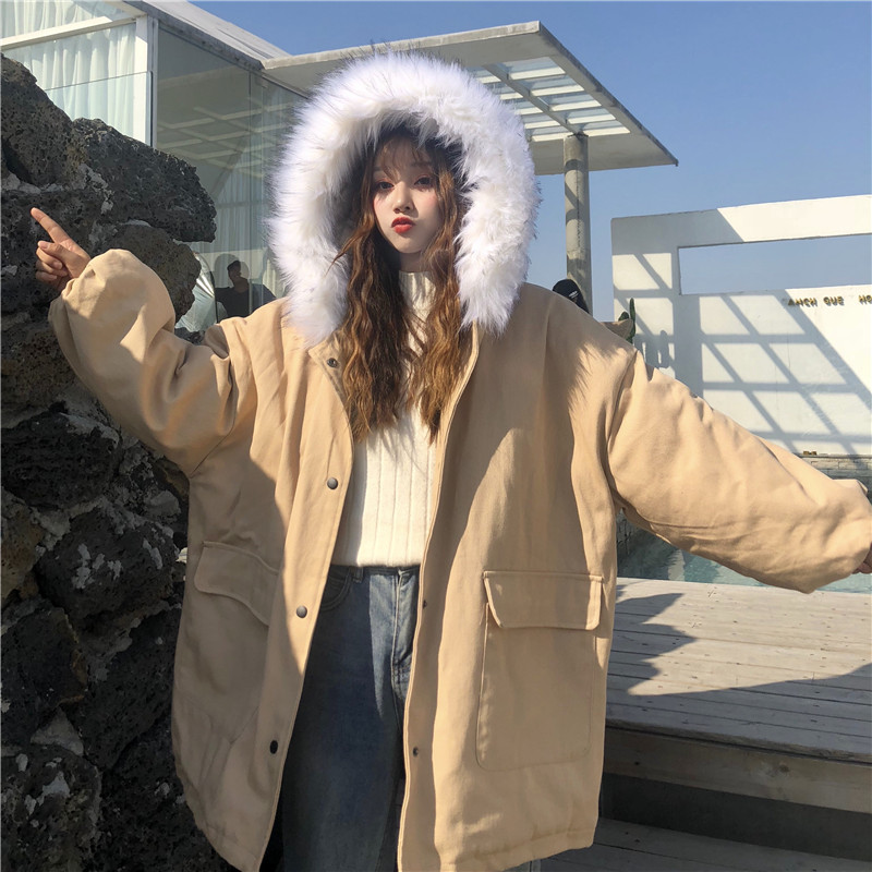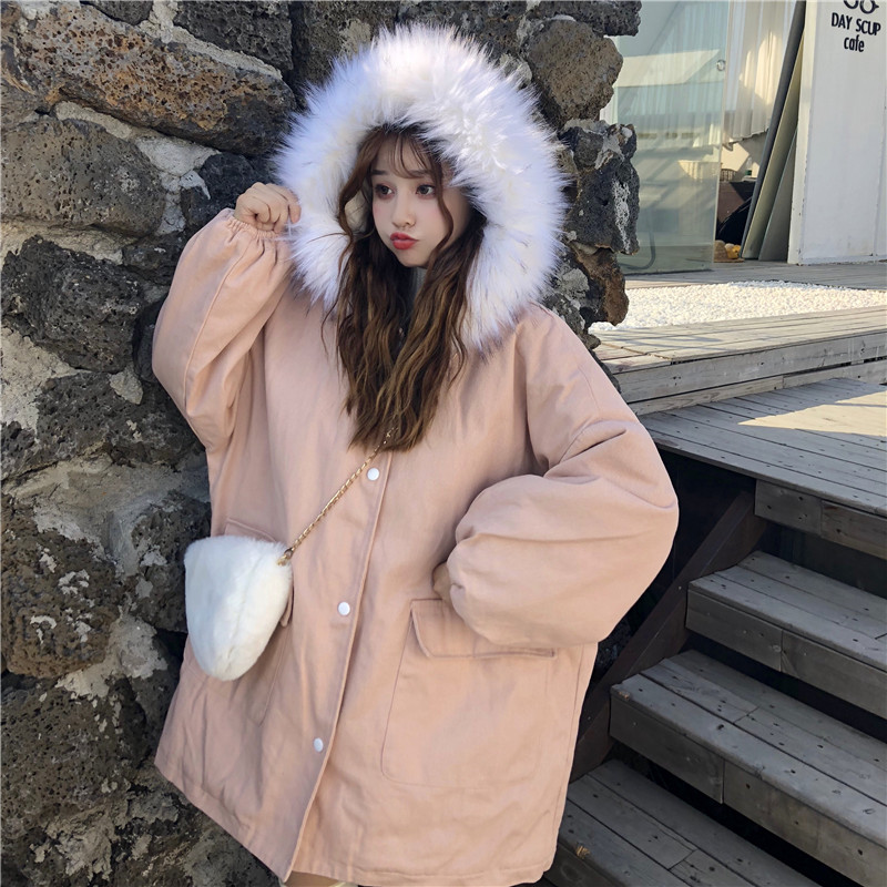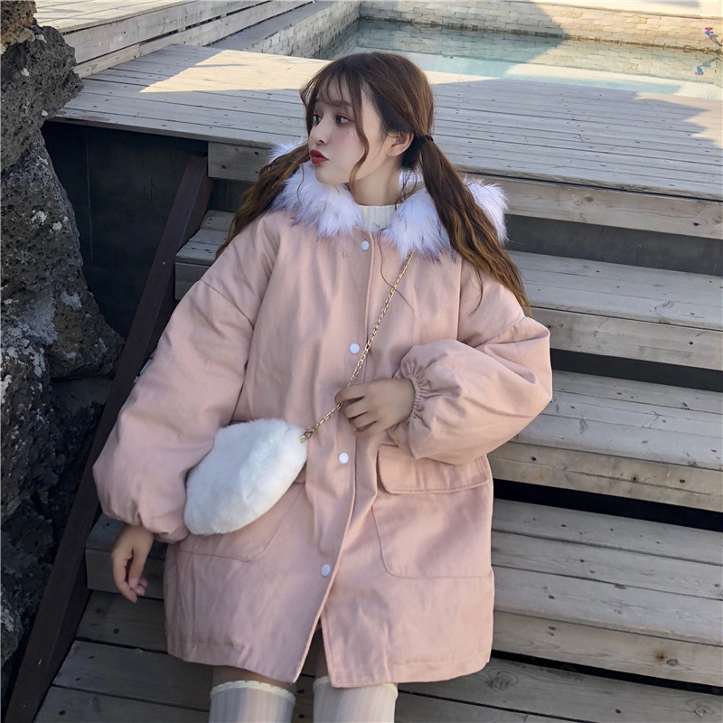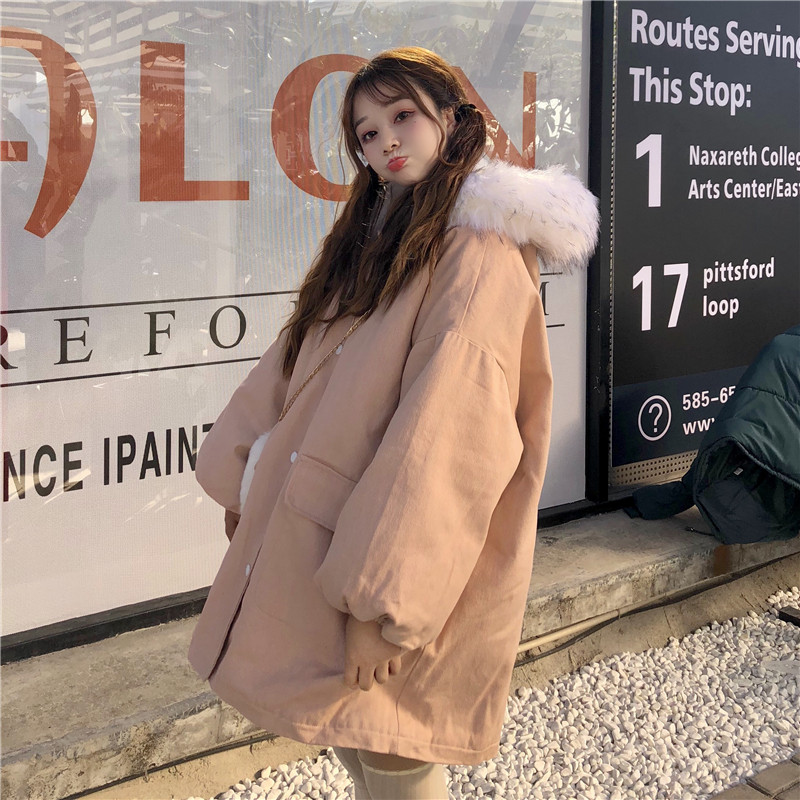 學生加厚寬松毛領棉襖女2018冬裝新款時尚中長款棉服可愛休閑外套