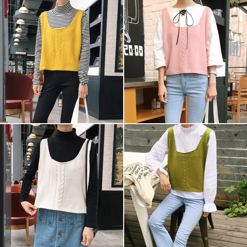 / 秋裝新款韓版顯瘦純色百搭上衣背心馬甲上衣針織衫毛衣女裝