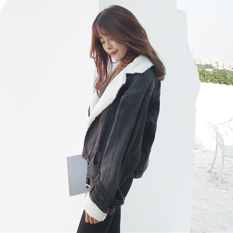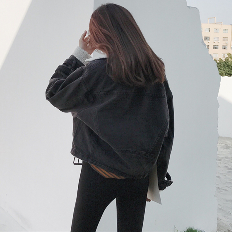 / 韓版拼接羊羔毛外套秋冬女裝2018新款寬松牛仔夾克開衫長袖上衣潮