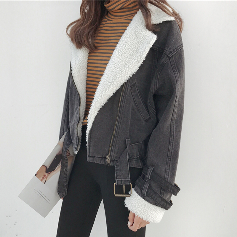 韓版拼接羊羔毛外套秋冬女裝2018新款寬松牛仔夾克開衫長袖上衣潮