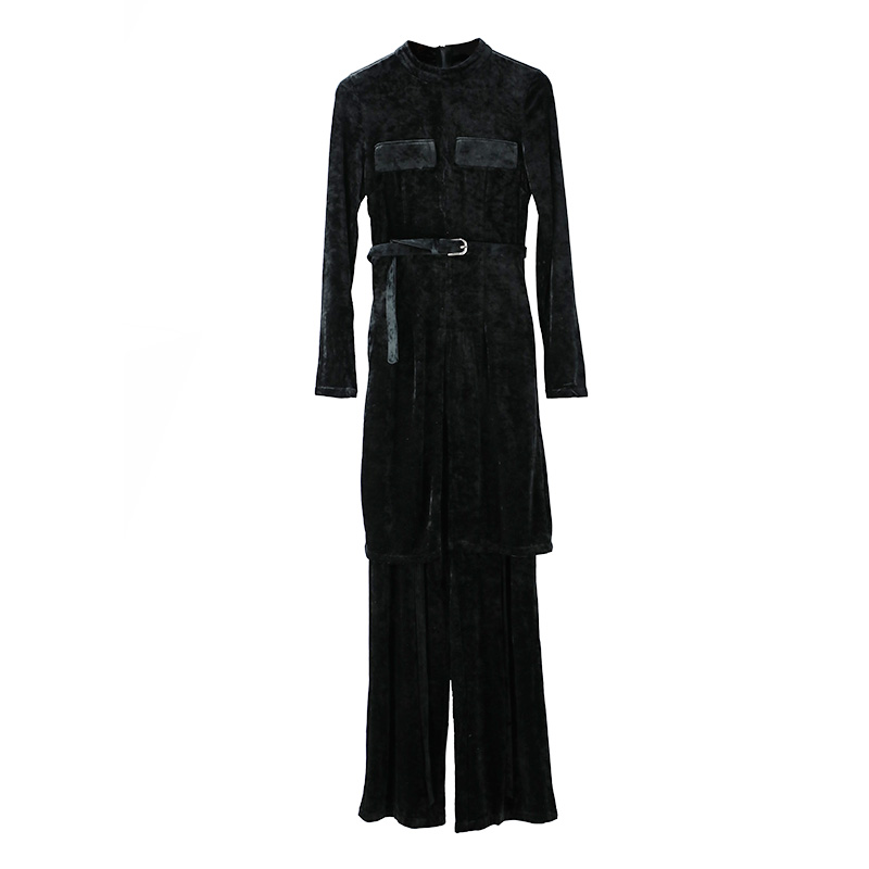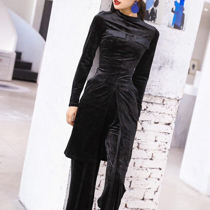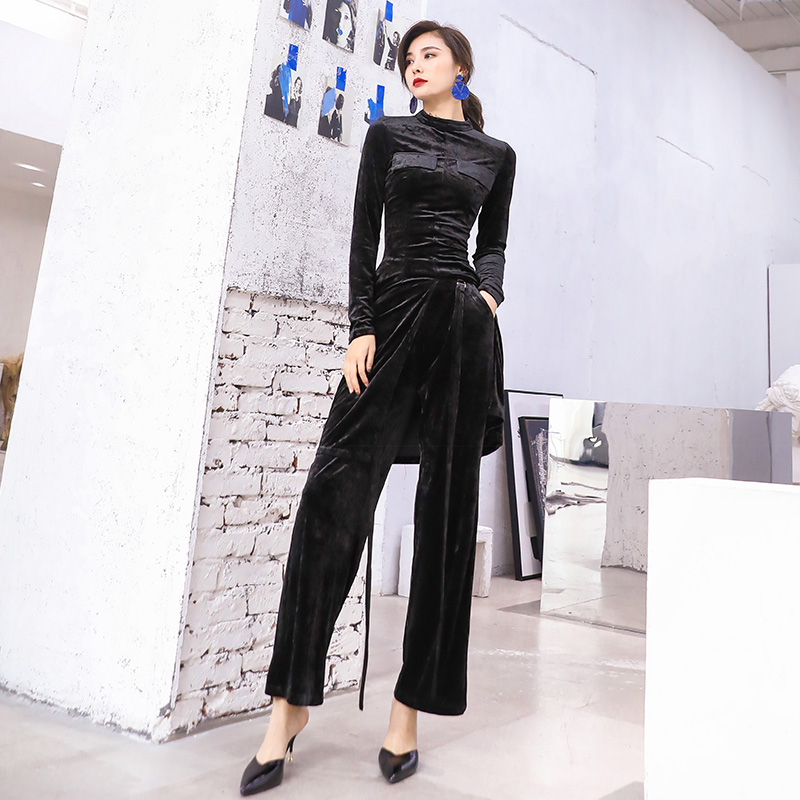 / 名媛睡衣風外穿休閑氣質上衣歐洲站絲絨闊腿長褲兩件套女神范套裝