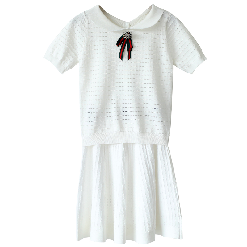 名媛收腰短袖針織套裝裙中長款法式上衣半身短裙女夏2018新款潮