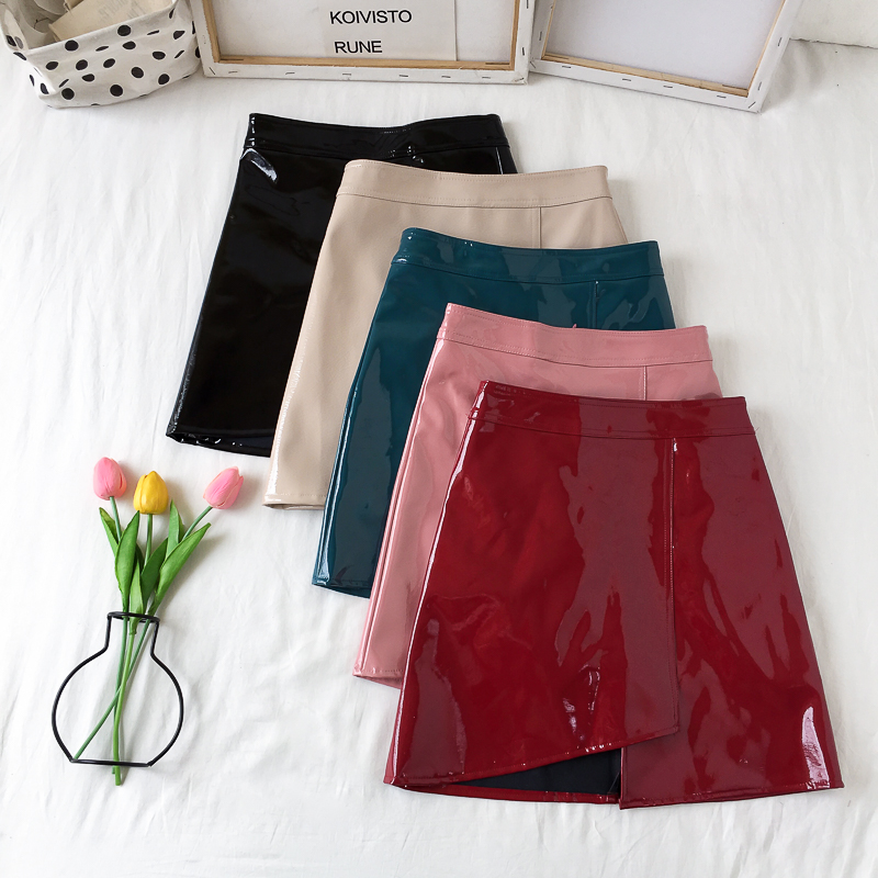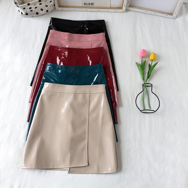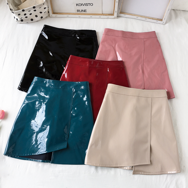 / 裙子新款復古chic韓版百搭亮皮秋季純色皮裙a字裙半身裙包臀裙女