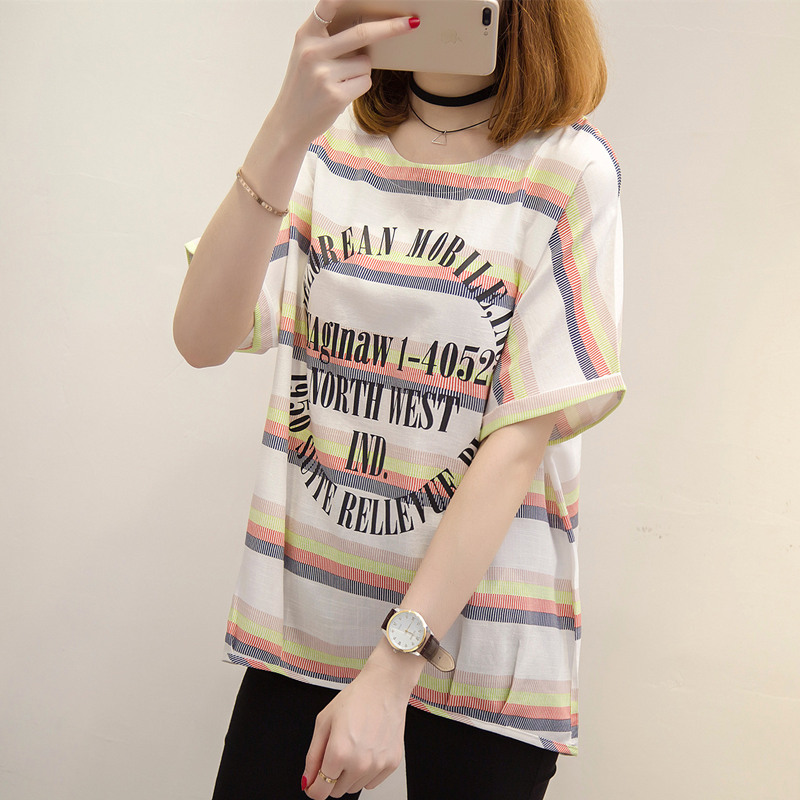 / 短袖上衣女夏新款條紋t恤女韓版學生小清新bf風體恤衫女百搭