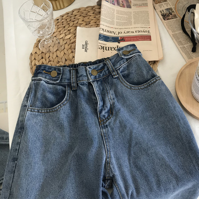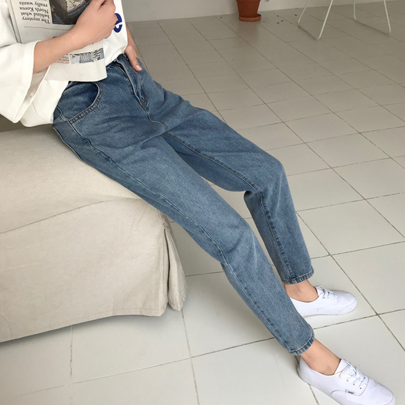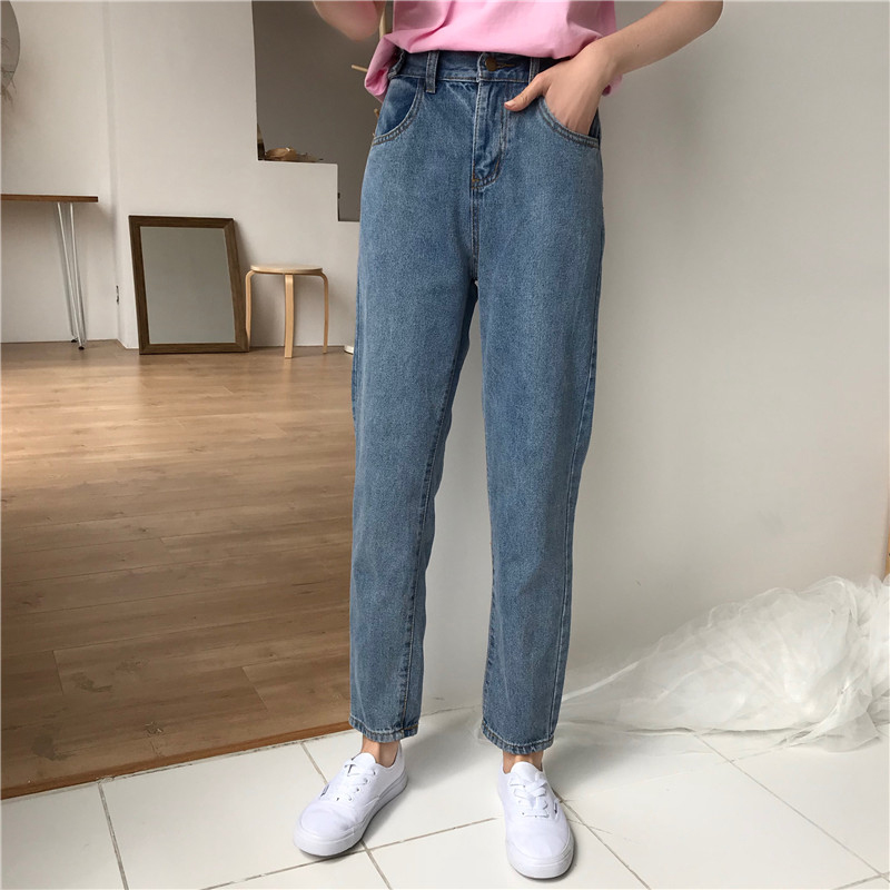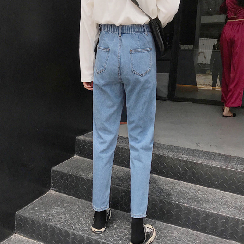 / 秋裝女2018新款韓版松緊高腰淺藍色牛仔哈倫褲子學生寬松直筒褲潮