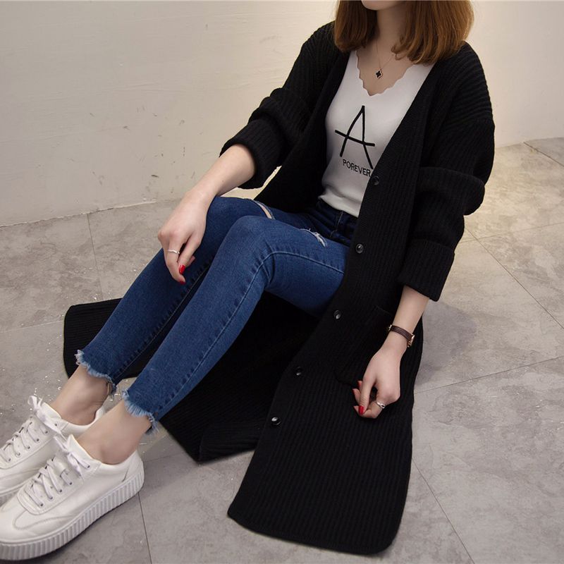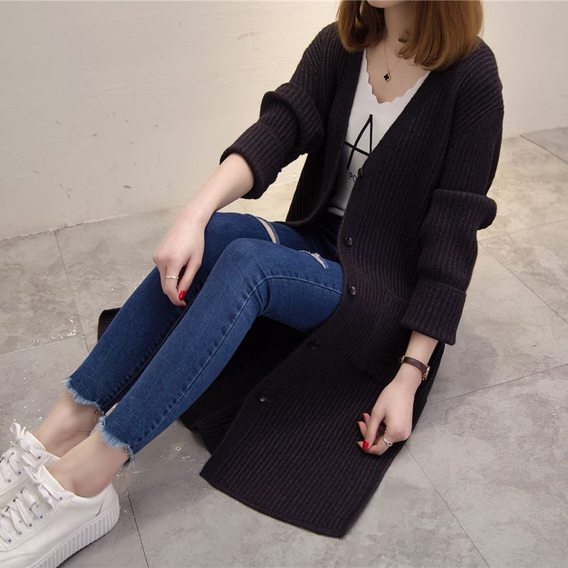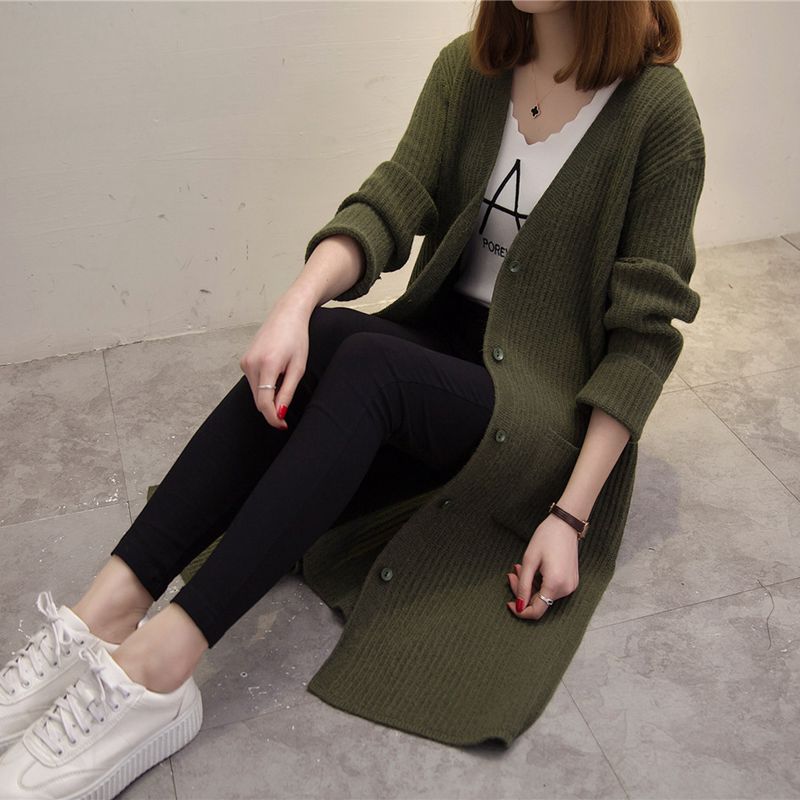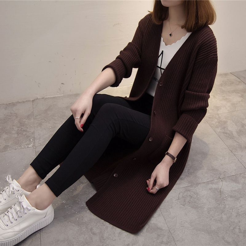 / 女裝冬裝新款潮韓版純色開衫毛衣針織衫女秋冬中長款長袖外套