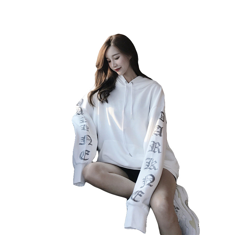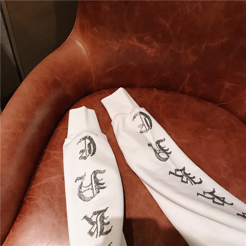 / 白色哥特字母亮片圓領抽繩ovresize加絨連帽衛衣2018新款女外套潮