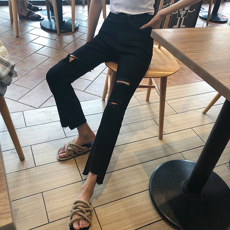 左右腳膝蓋處以及大腿位置 都是隨性破洞處理