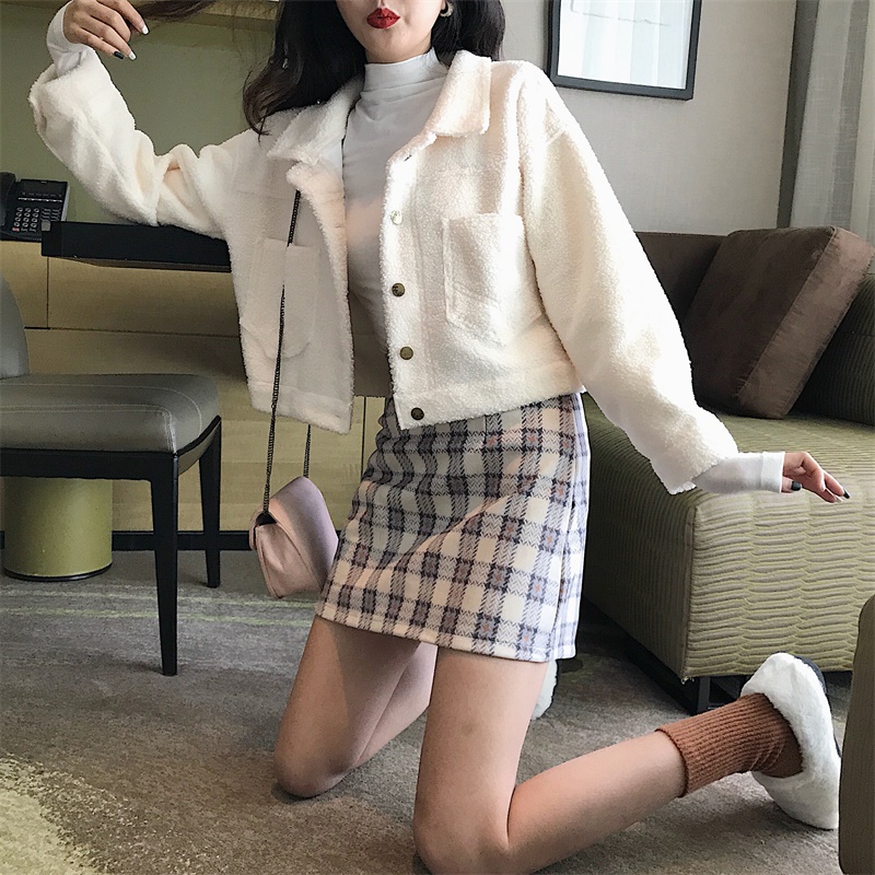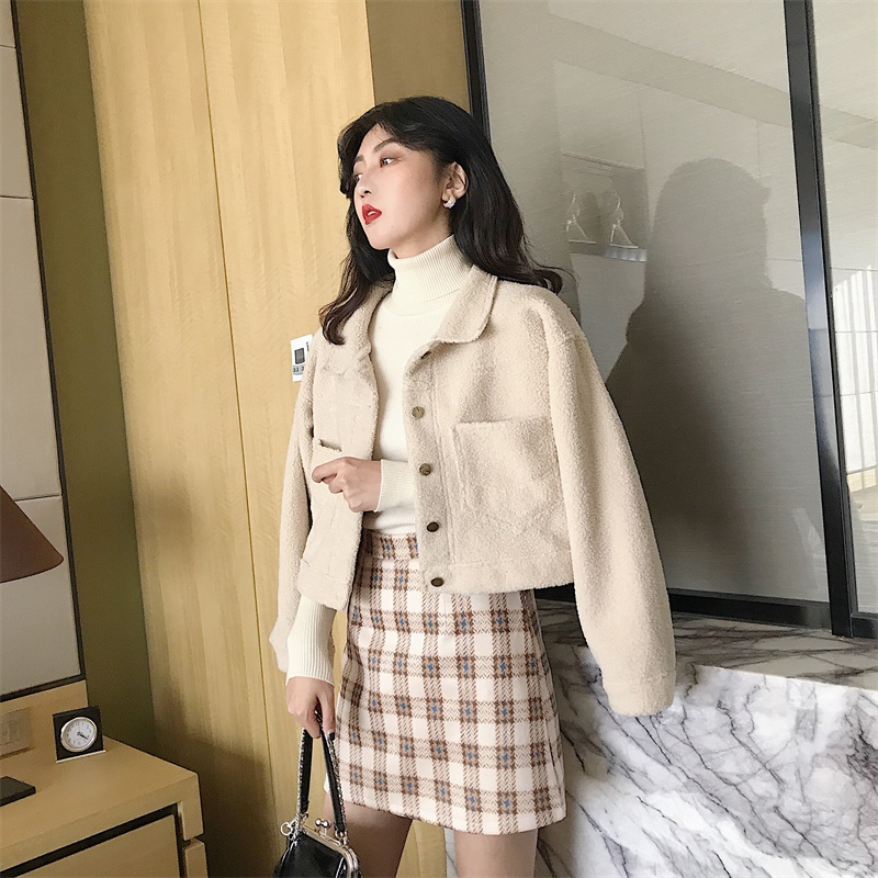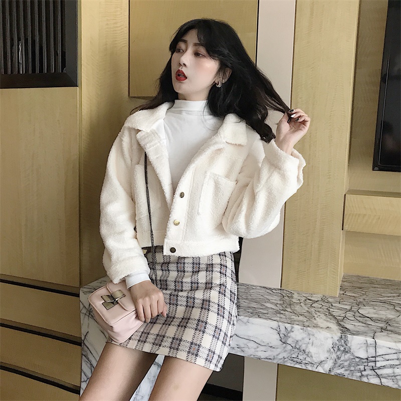 復古溫柔百搭慵懶西服領短款加厚保暖羊羔毛開衫外套女2018新款潮
