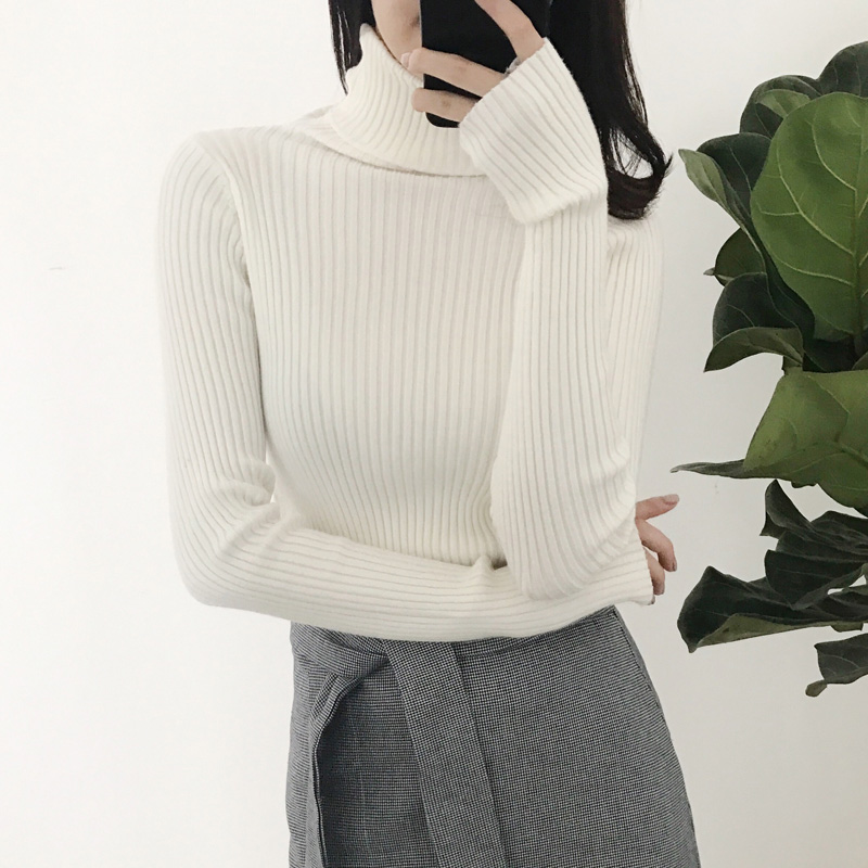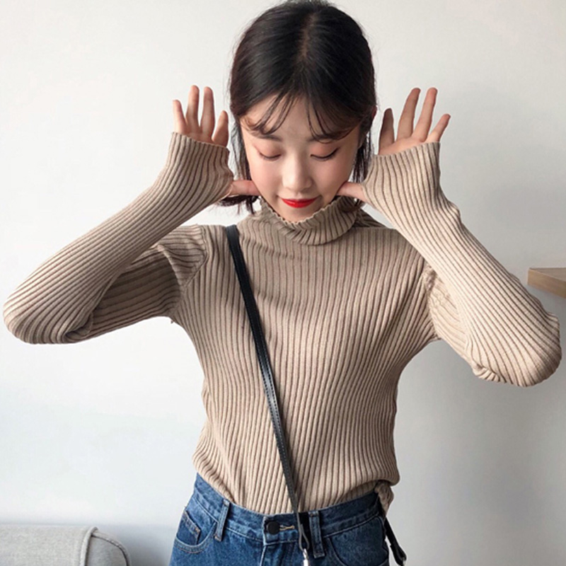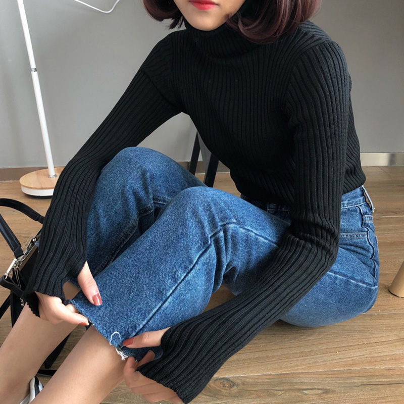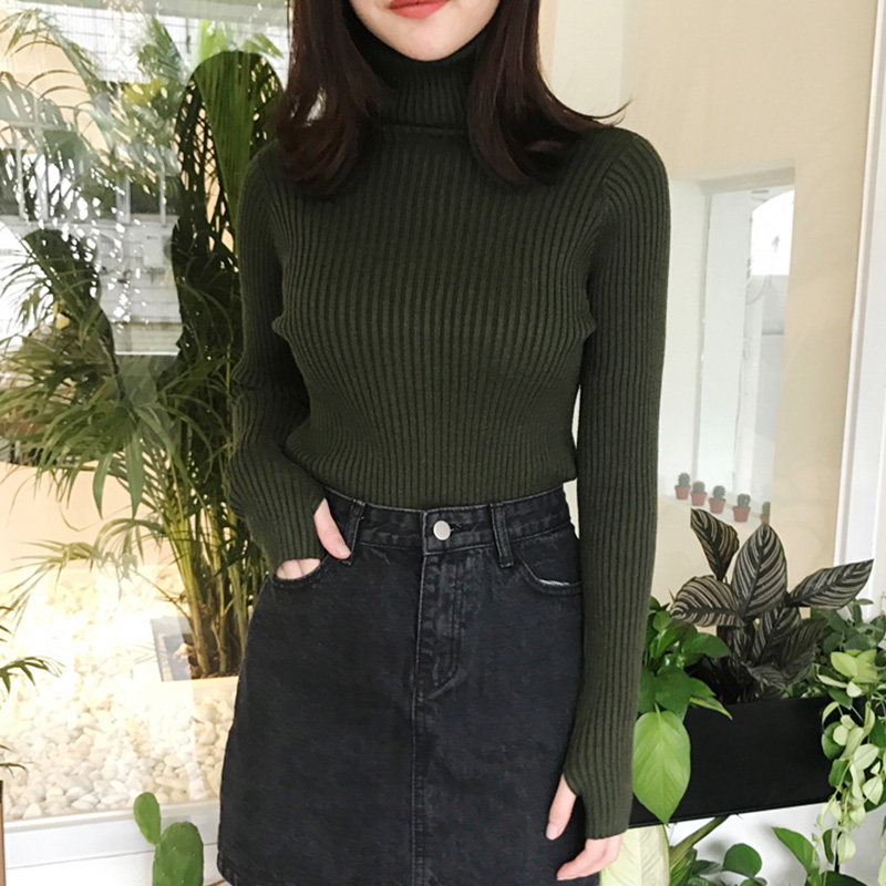 秋裝女2018新款韓版chic糖果色學生高領套手指打底毛衣針織衫上衣