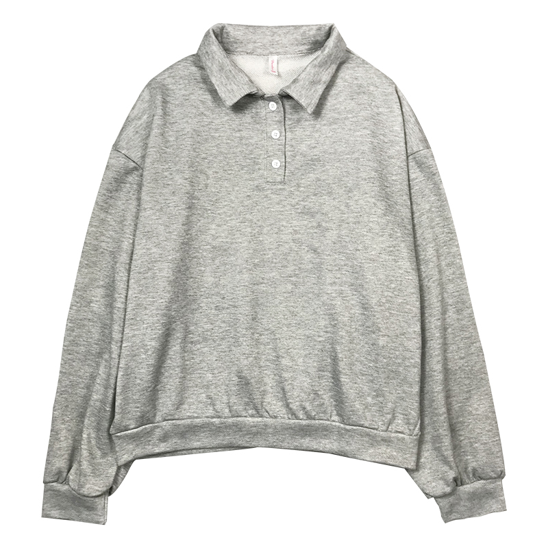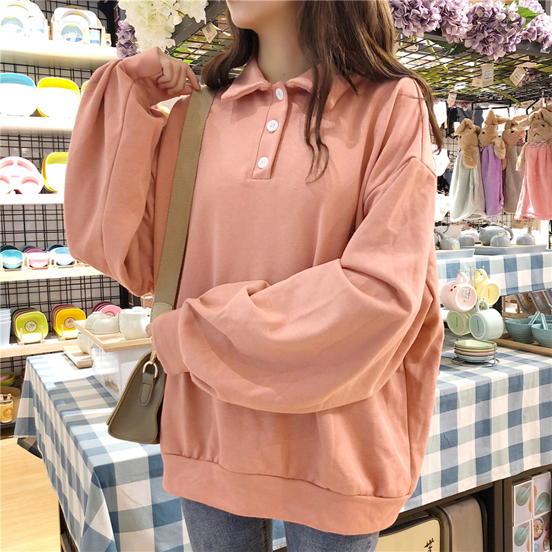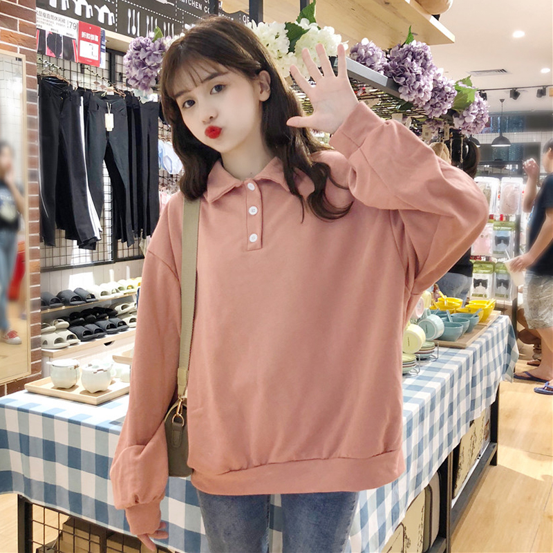 polo領套頭衛衣女2018秋裝新款純色寬松長袖上衣學生慵懶休閑外套