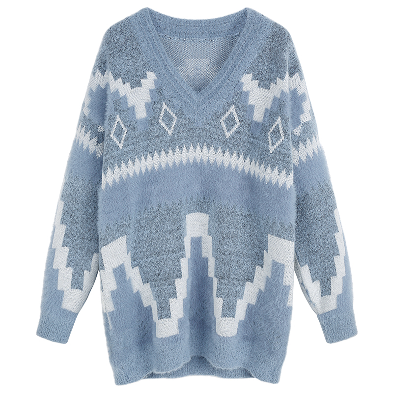 MG小象中長款慵懶風毛衣女v領長袖2018秋冬新款小清新心機上衣潮