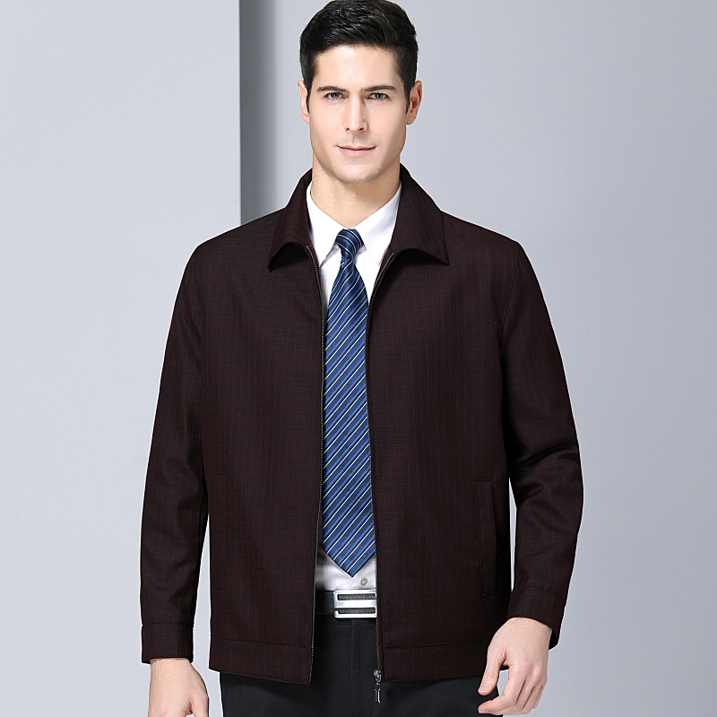 / 2018新款秋裝品牌中老年男士休閑夾克衫商務男爸爸裝翻領格子外套