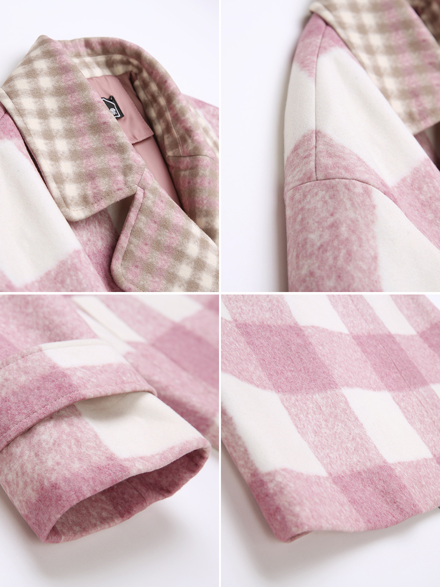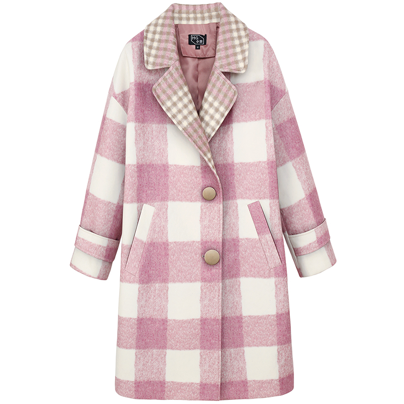MG小象流行呢子大衣女冬中長款韓版2018新款寬松格子原宿毛呢外套