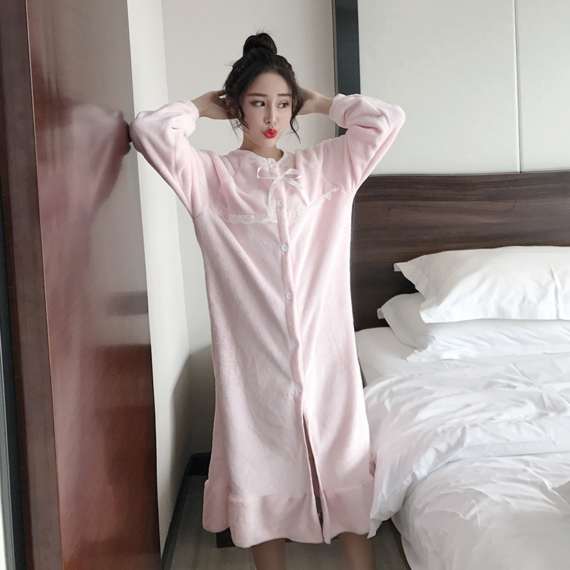 / 韓版時尚秋裝女2018新款套裝休閑家居服中長款加厚加絨睡衣睡袍女