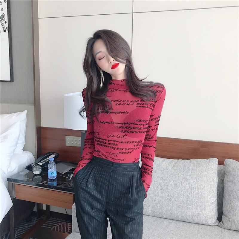 冬裝上衣女慵懶長袖t袖女韓版氣質立領性感修身百搭長袖打底衫潮