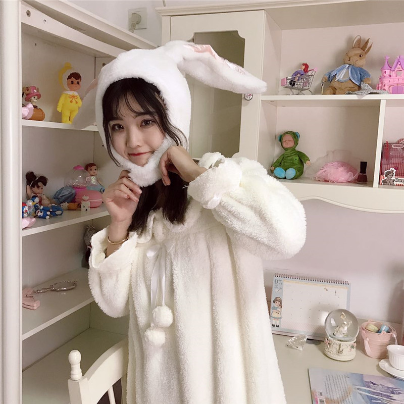 / 秋冬韓版可愛甜美毛絨絨加厚長袖睡衣連衣裙學生寬松中長款睡裙女