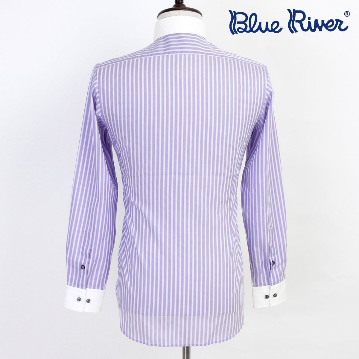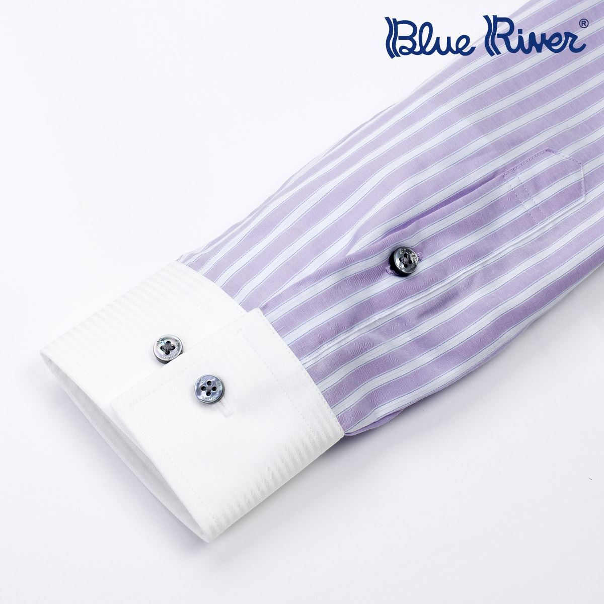 / BLUE RIVER/藍河商務白領襯衫紫色寬條紋高支棉長袖襯衣職業男裝
