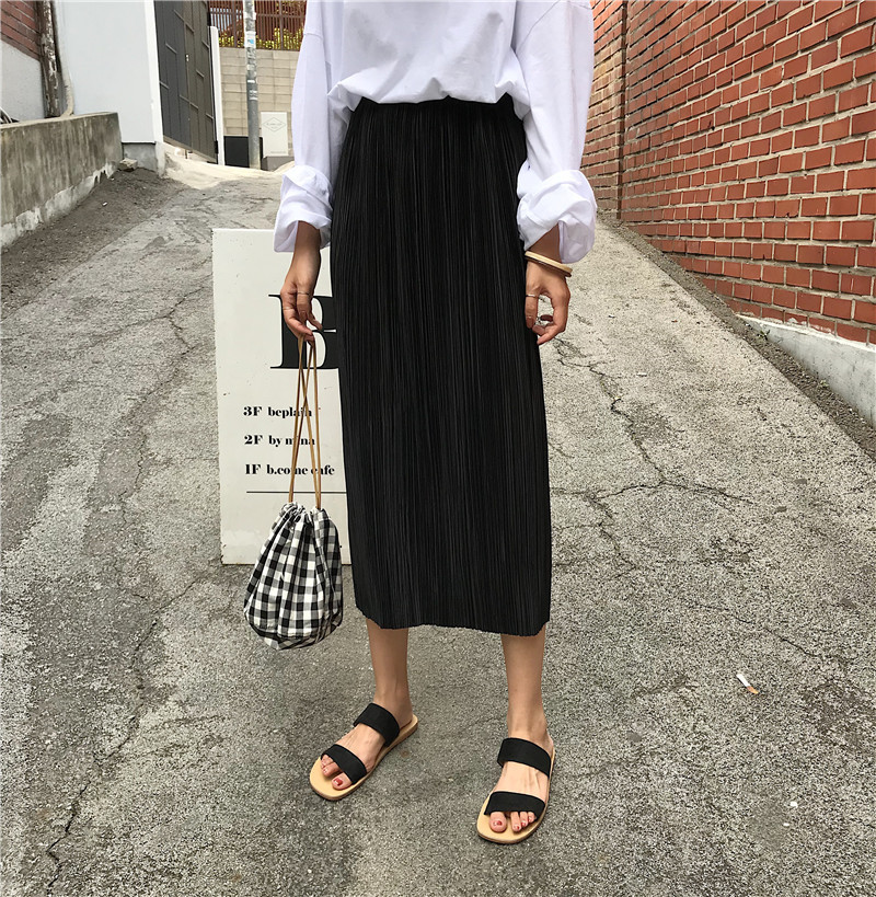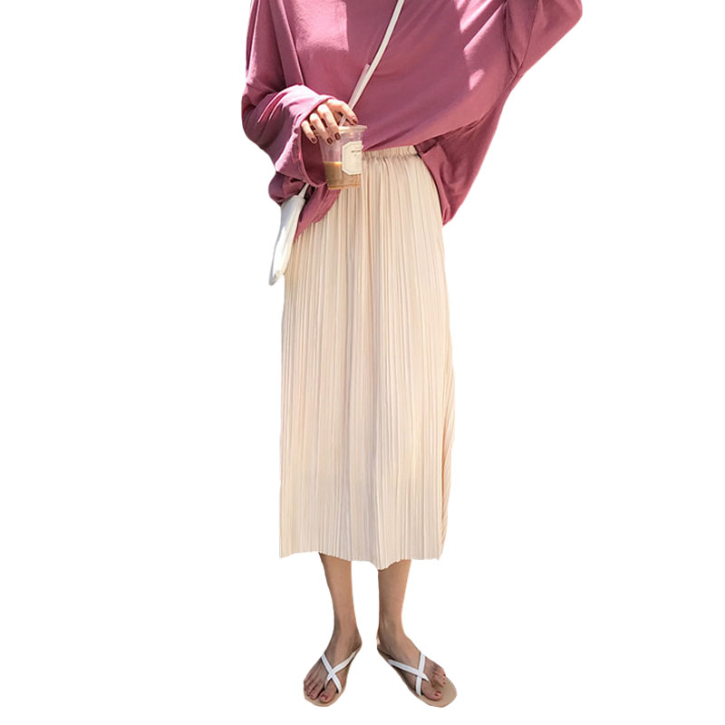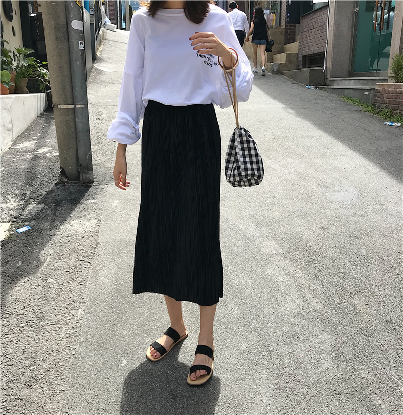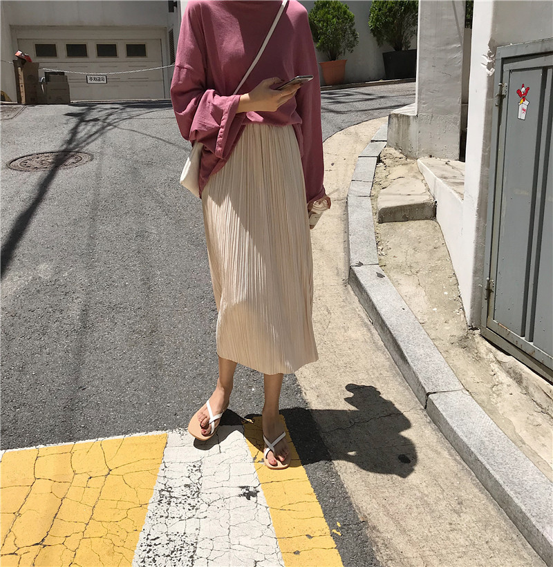 / 秋季女裝韓版中長款寬松氣質百搭簡約百褶裙高腰半身裙A字裙長裙