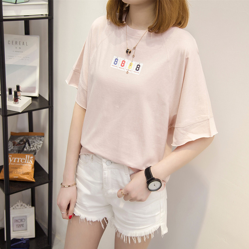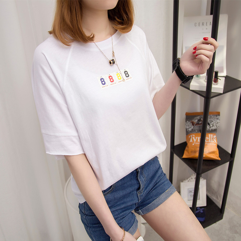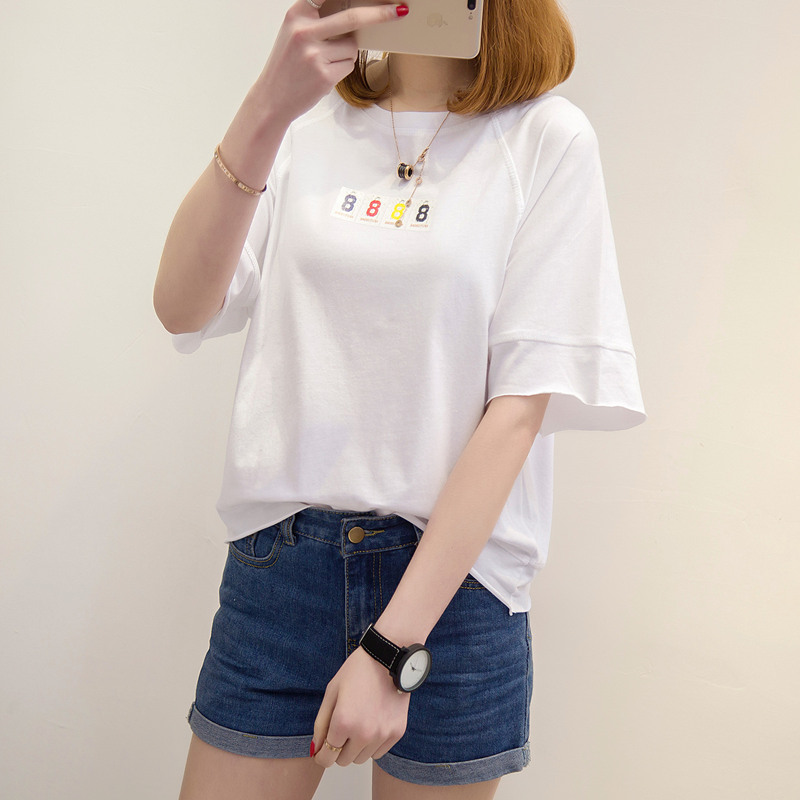夏裝新款女裝白色t恤女短袖上衣韓版學生寬松字母體恤衫百搭