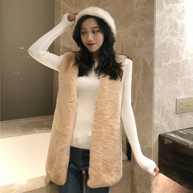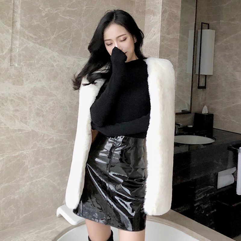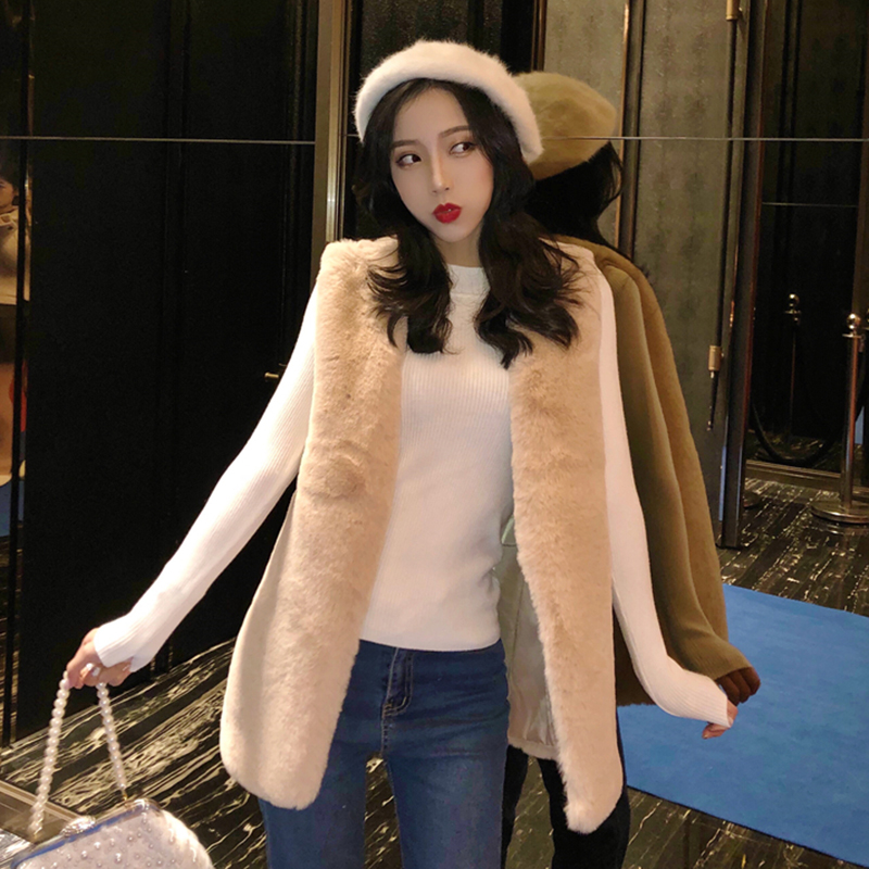 / 港味套裝女秋2018新款時尚中長款毛絨馬甲外套修身長袖針織打底衫