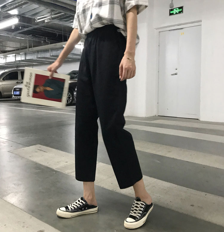 / 夏季女裝韓版松緊腰休閑褲學生直筒褲寬松高腰顯瘦闊腿褲九分褲潮