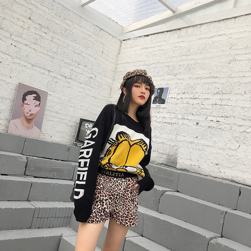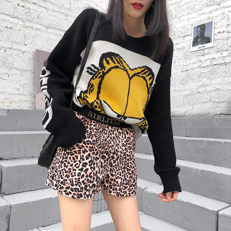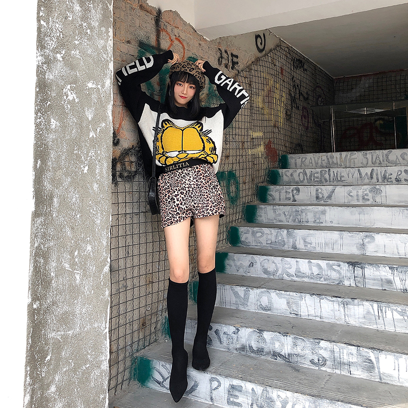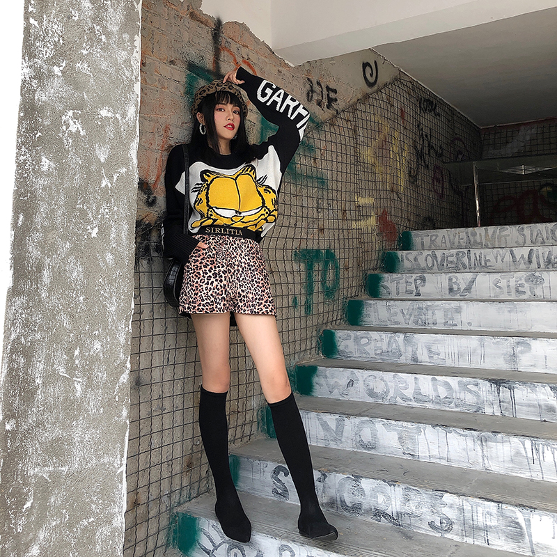 港味chic復古百搭高腰豹紋短褲女2018新款學生時尚顯瘦字母休閑褲