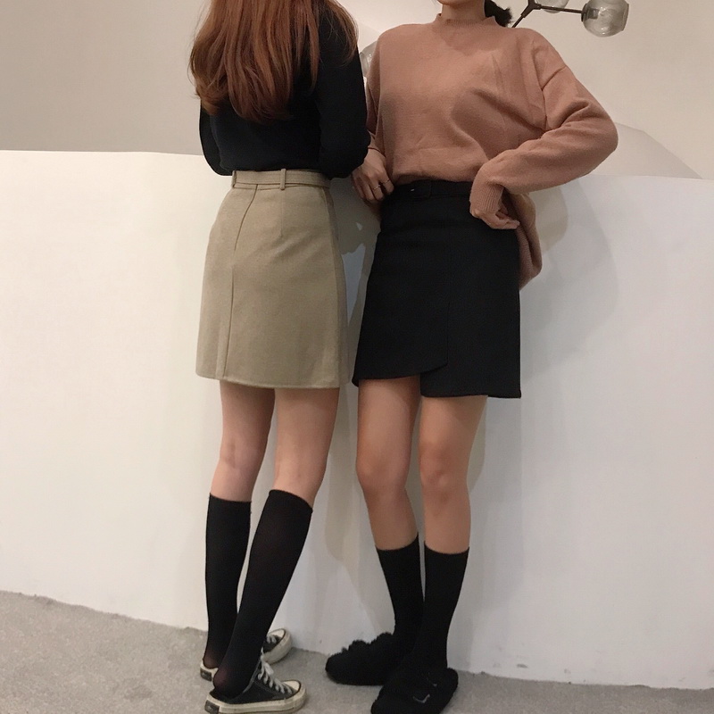 可可里小姐~韓風chic秋冬不規則A字半身裙帶腰帶