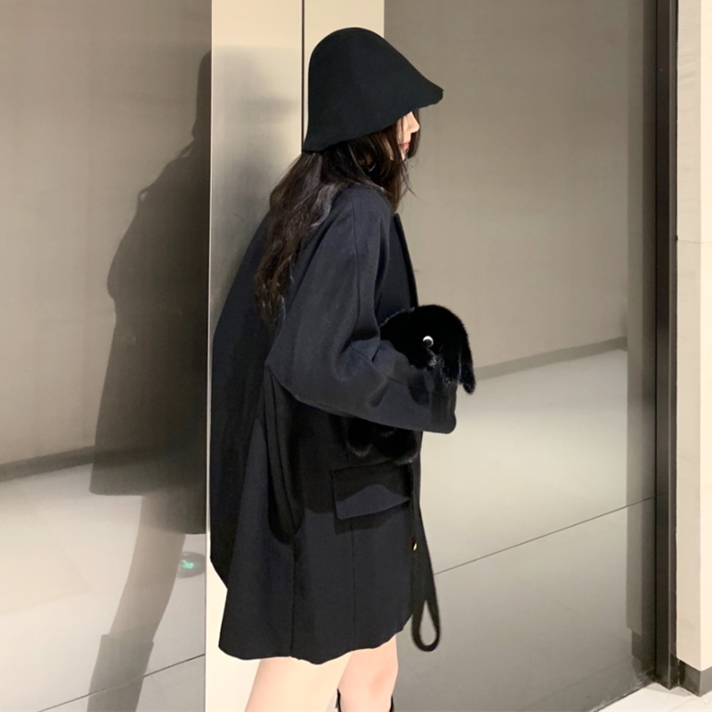 復古溫柔慵懶風隨意暖色系百搭寬松中長款毛呢外套女韓版呢子大衣