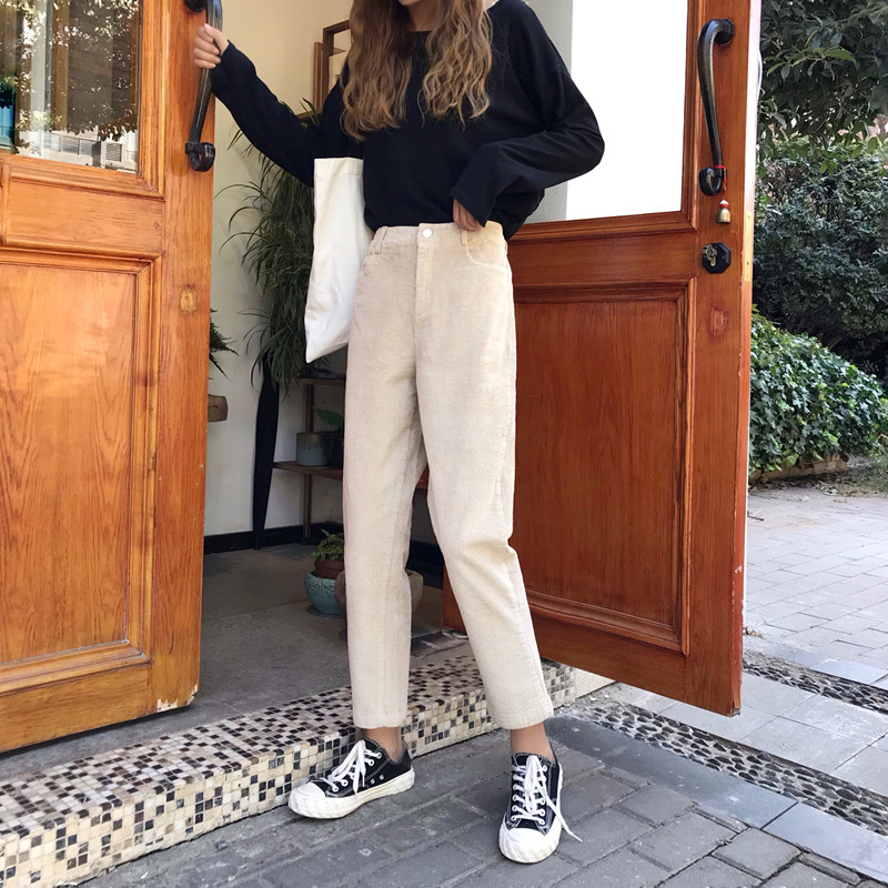 / 2018新款秋冬韓版燈芯絨休閑褲闊腿褲寬松直筒褲九分褲學生褲子女