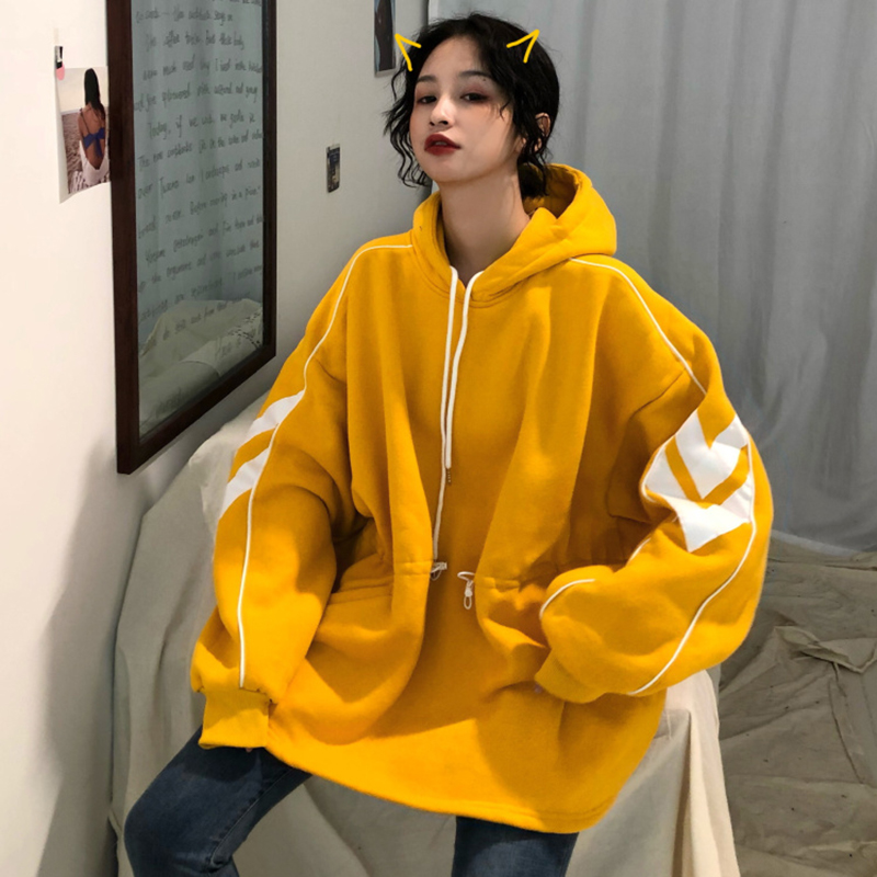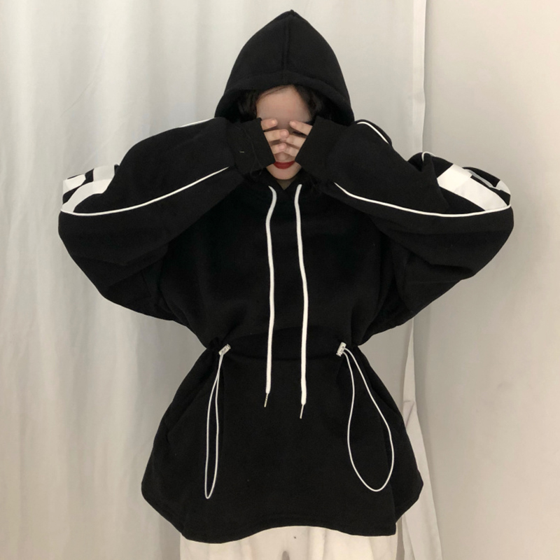 / 中長款加絨套頭衛衣女冬裝2018新款韓版寬松抽繩收腰顯瘦連帽外套
