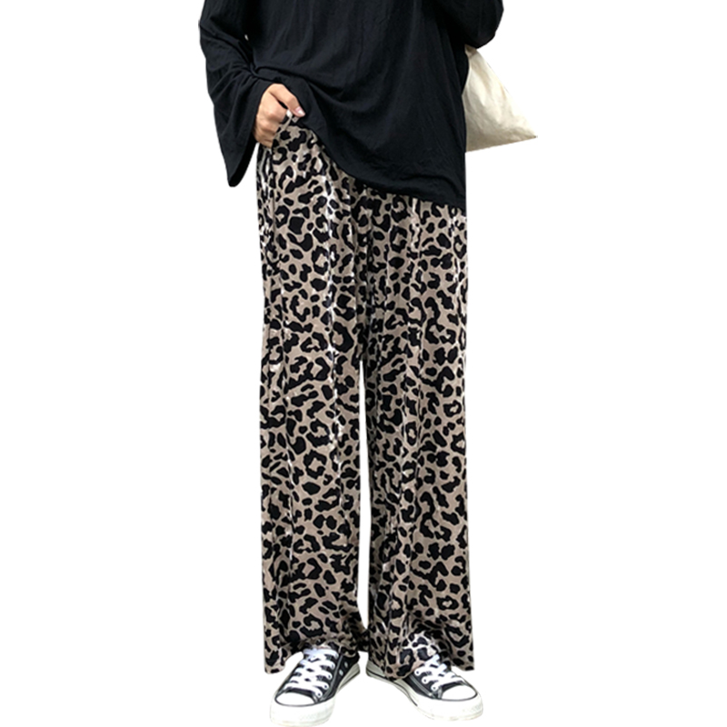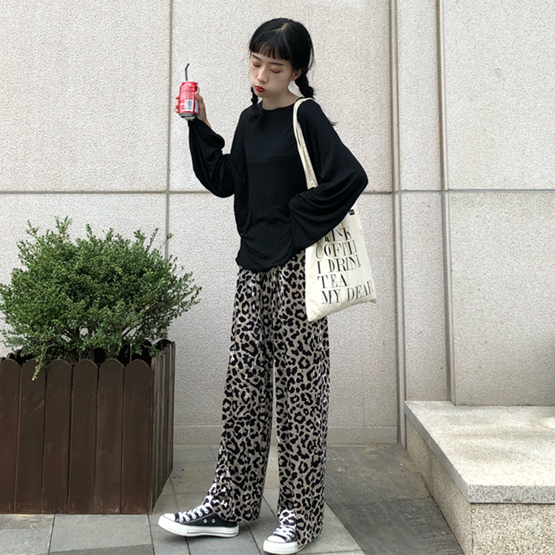 / 褲子女秋裝2018新款復古豹紋直筒休閑褲時尚氣質高腰寬松闊腿長褲