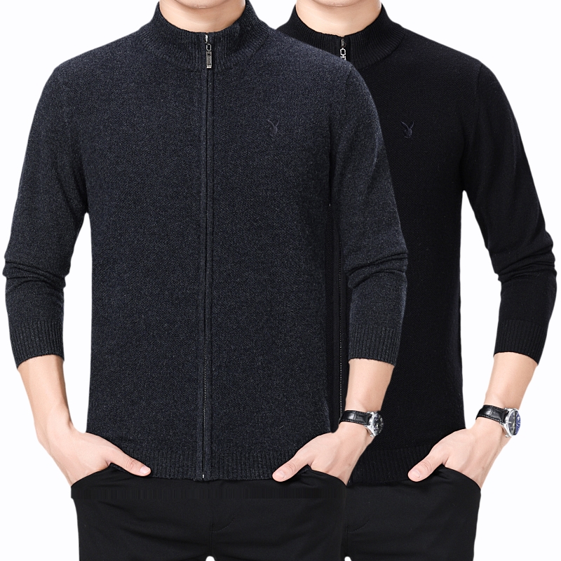 花花公子正品中年男士羊絨毛衣商務男裝加厚立領羊毛開衫外套冬裝
