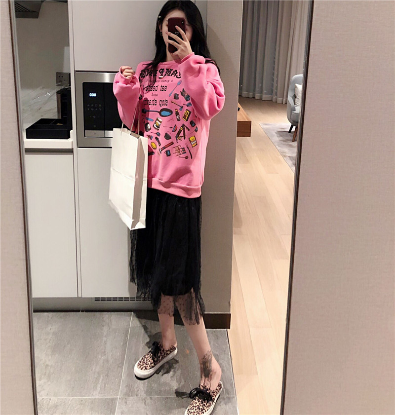 新款韓版字母印花加絨衛衣時尚套裝百搭修身中長款連衣裙兩件套女
