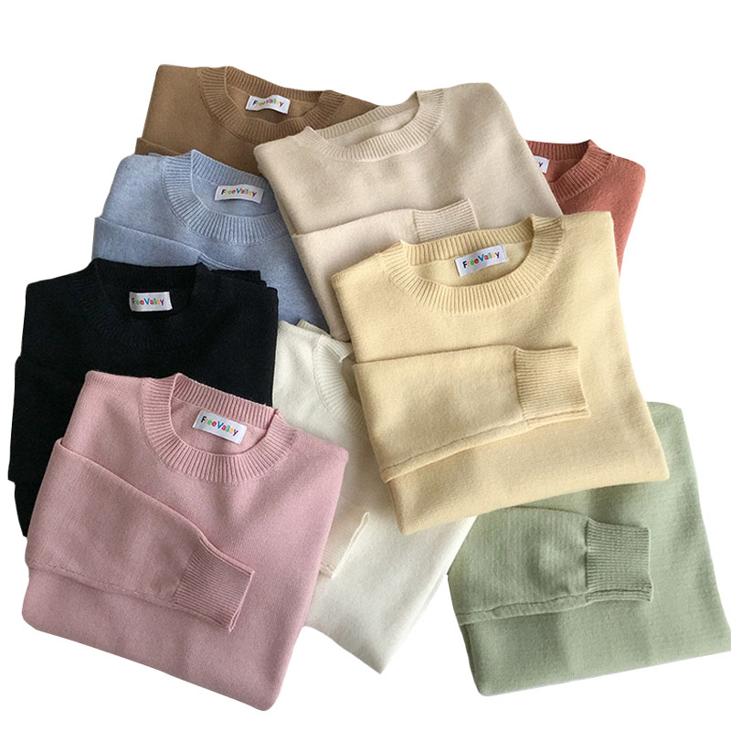 / 秋冬女裝韓版簡約純色寬松甜美保暖針織衫網紅套頭毛衣打底衫上衣