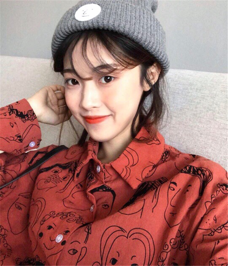 / 秋裝女裝韓版氣質小清新可愛卡通圖案長袖襯衫休閑學生打底衫襯衣