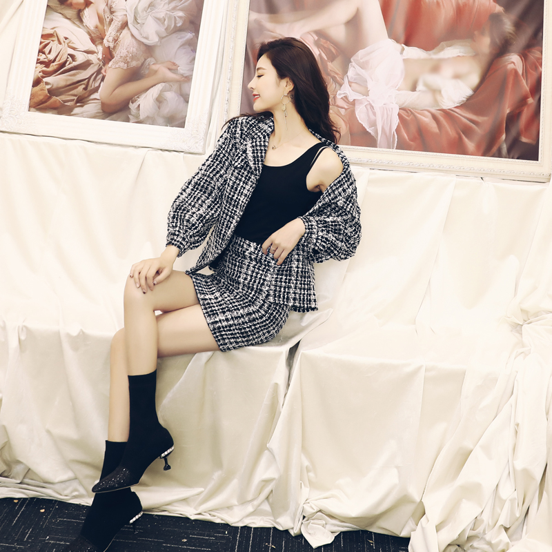 名媛網紅氣質秋冬毛呢套裝2018秋冬新款呢子上衣時尚半身套兩件套