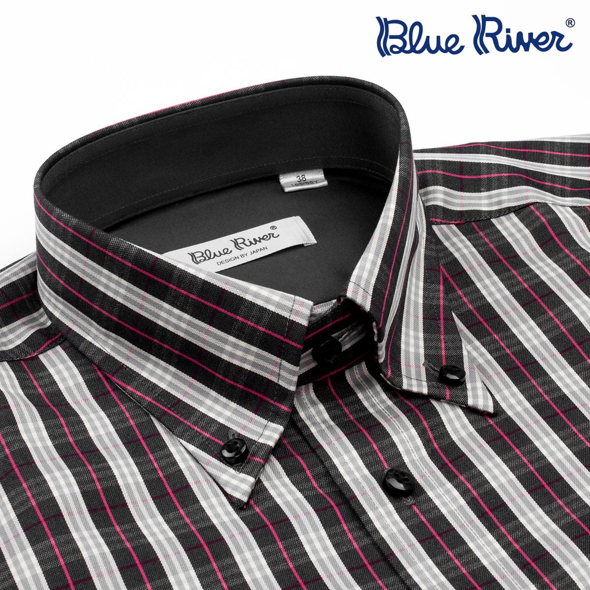 / 藍河秋季新款 深色彩色大格子商務休閑長袖襯衫高支棉男式襯衣
