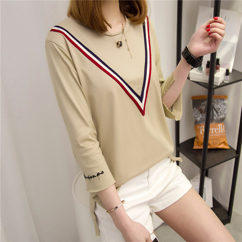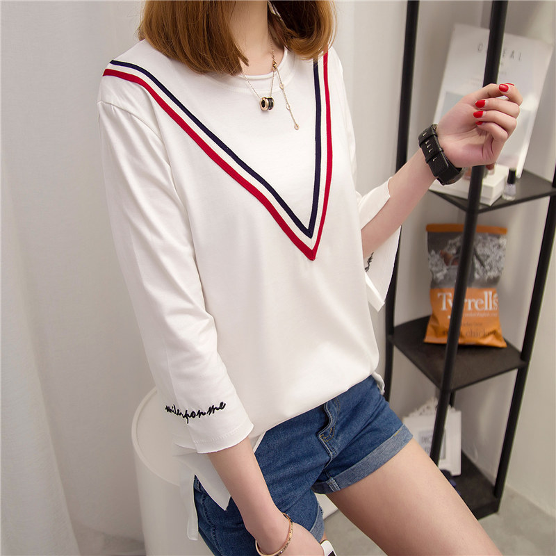 韓版寬松t恤中長袖小衫夏裝七分袖體恤女裝新款女夏學生上衣
