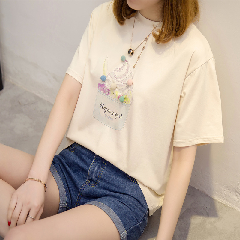 / 短袖t恤女新款韓版上衣女百搭寬松型學生打底體恤衫夏季女裝