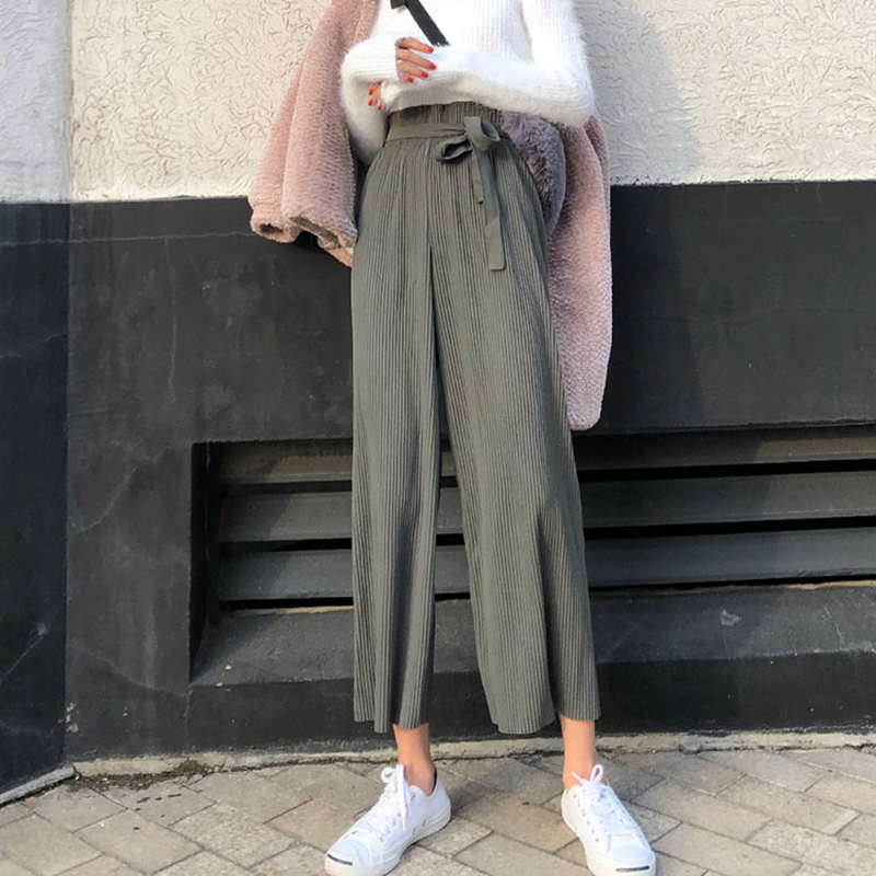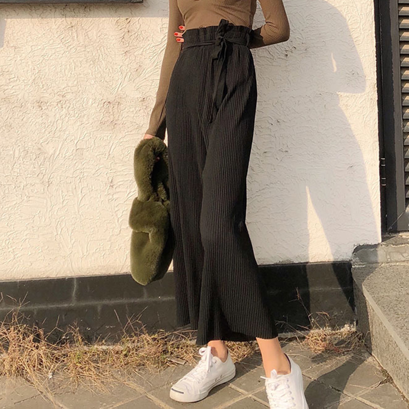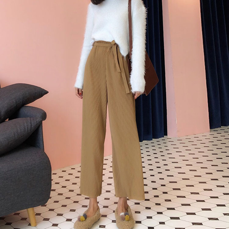 / 秋冬2018新款女裝韓版chic壓褶初戀褲子學生高腰闊腿褲休閑長褲潮