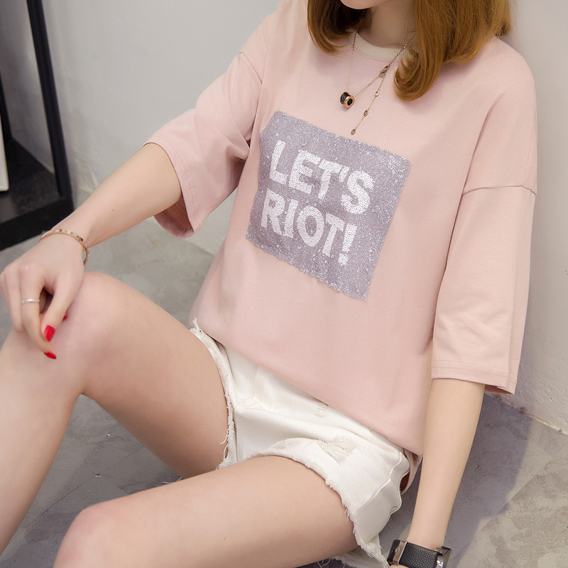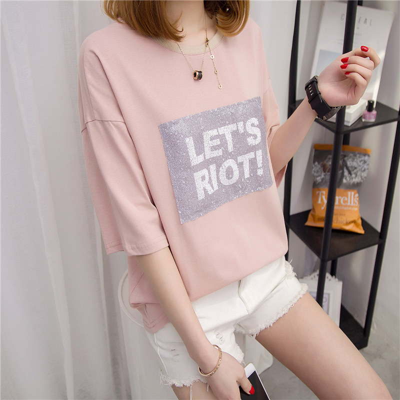 女裝春裝短袖上衣女夏新款白色t恤女寬松打底衫韓版時尚百搭