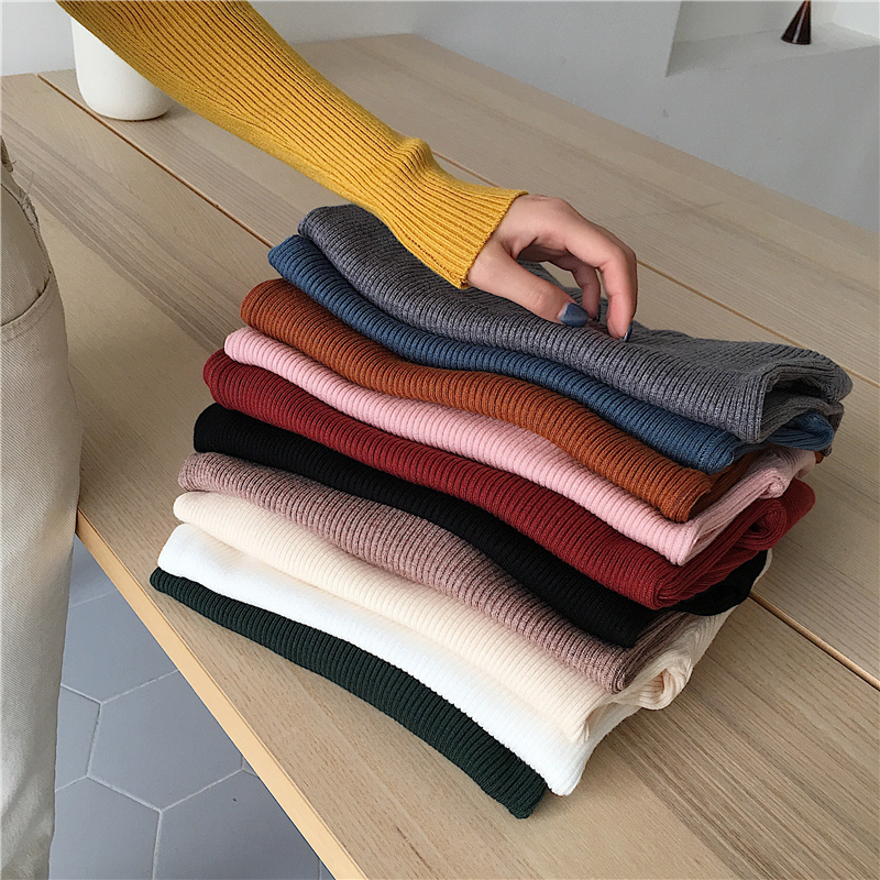 / 秋冬新款V領針織長袖修身緊身保暖打底衫上衣復古套頭顯瘦毛衣女