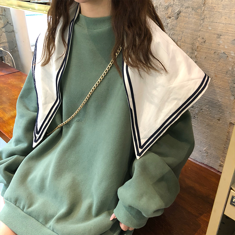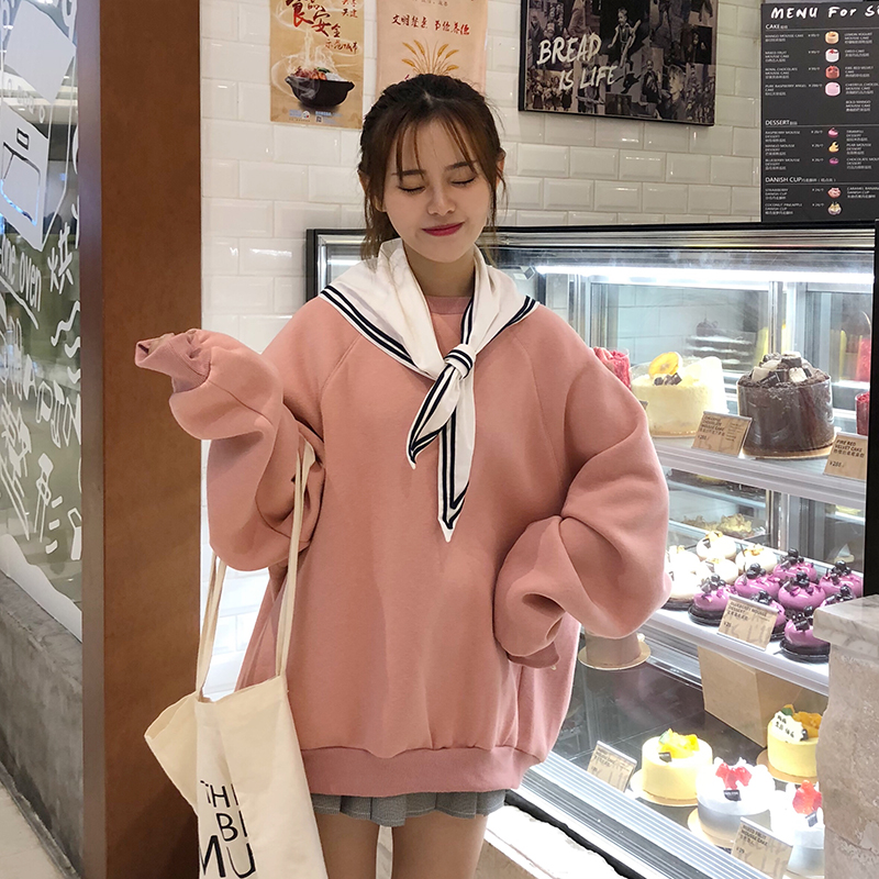 / 秋冬韓版BF風寬松學院風個性披肩加絨加厚套頭超火衛衣上衣外套女