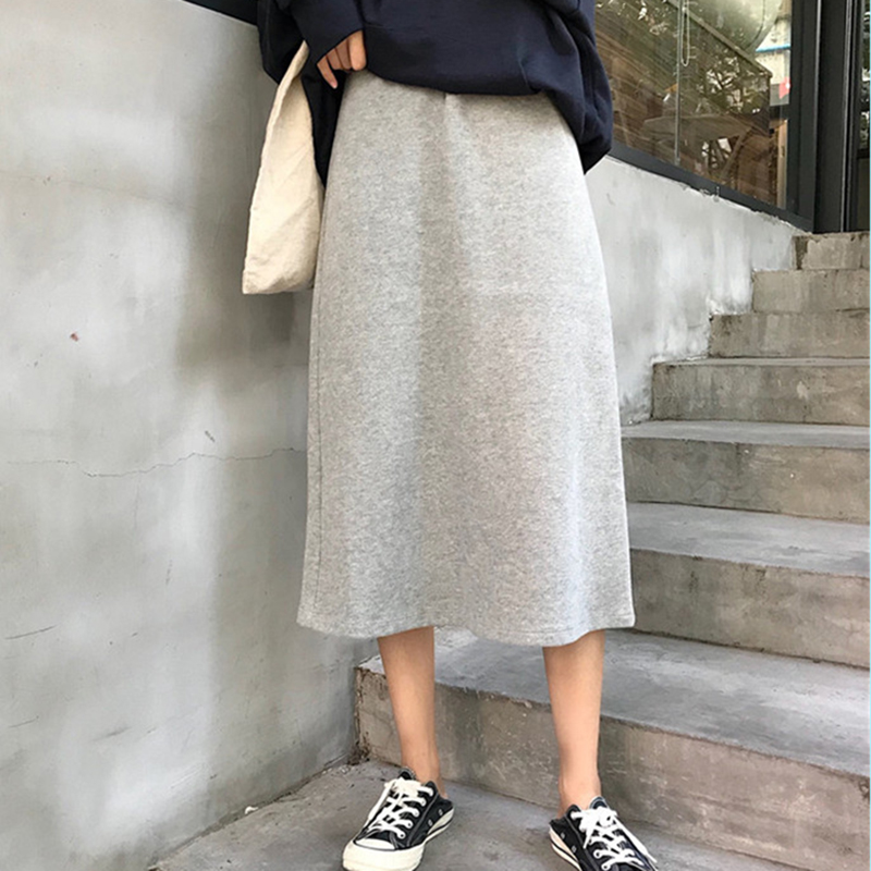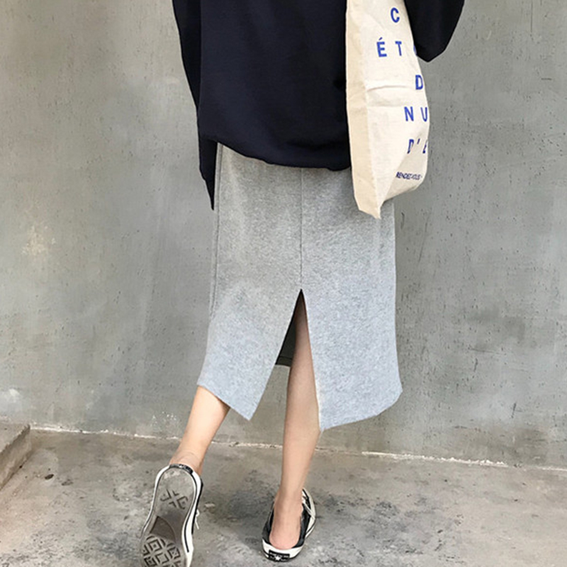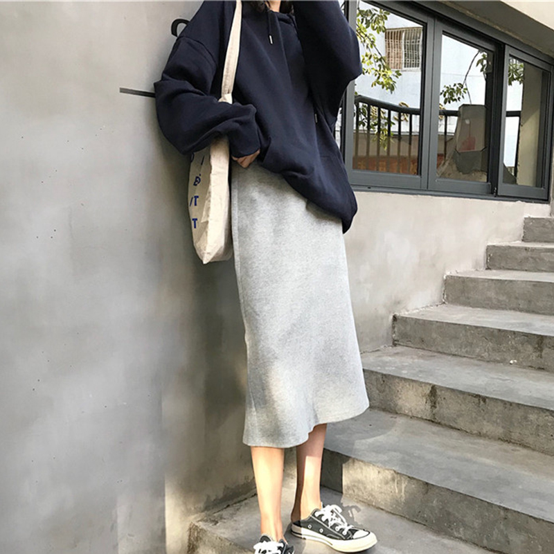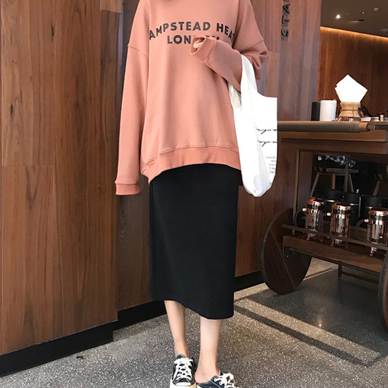 秋裝女2018新款韓版chic學生高腰開叉半身裙時尚氣質黑色中長裙子