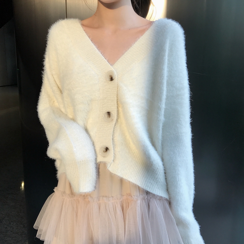 時尚套裝chic毛衣寬松針織開衫外套秋冬加厚網紗百褶蛋糕裙兩件套
